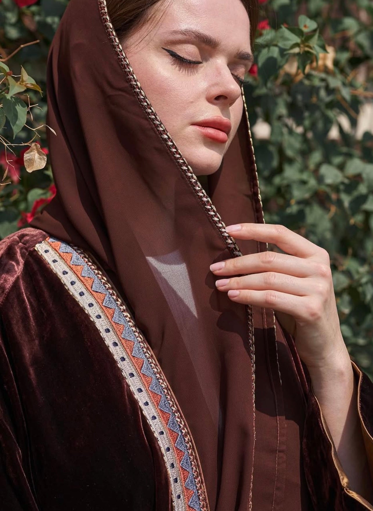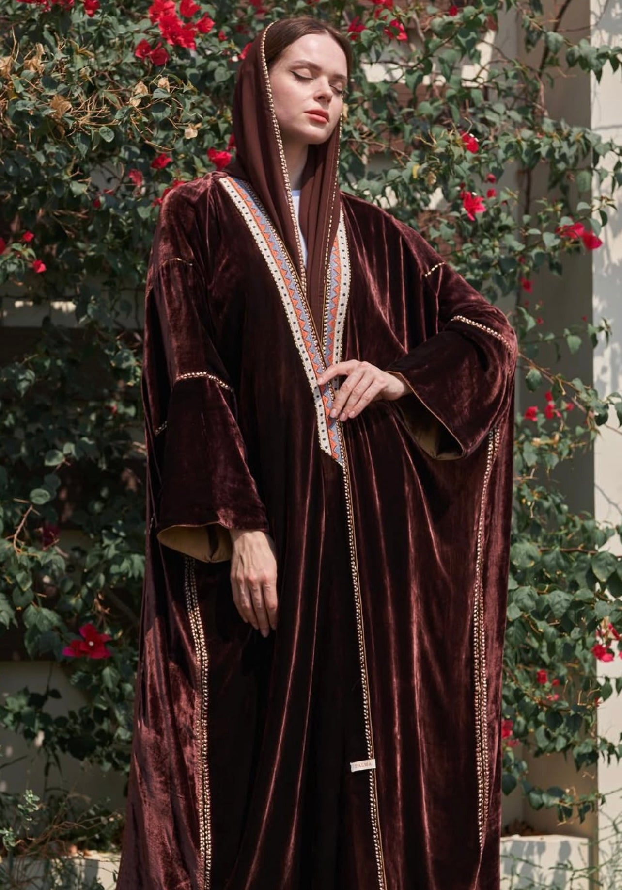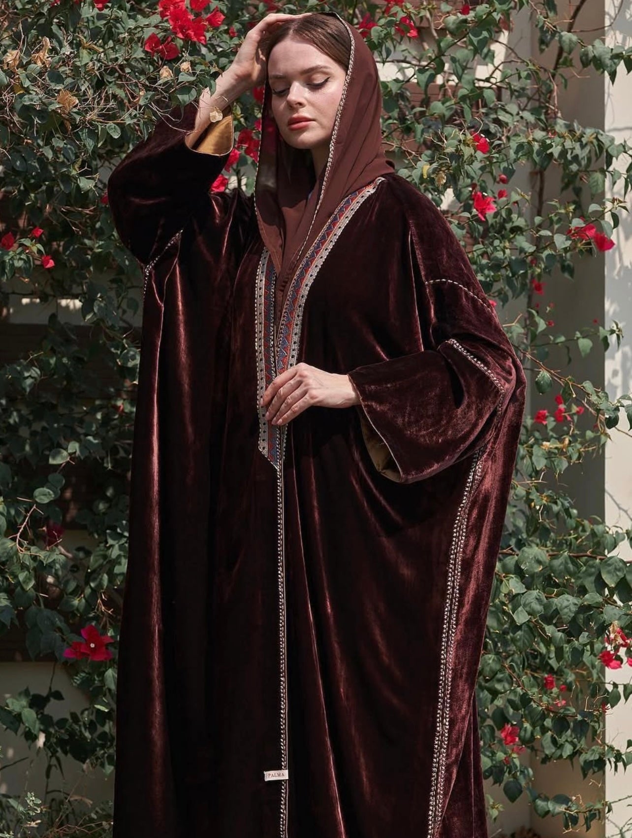 عباية أنيقه بخامة مخملية راقية وتصميم عصري يليق بكل إطلالة. سهلة التنسيق وتجمع بين الأناقة والأنوثة في كل تفصيل