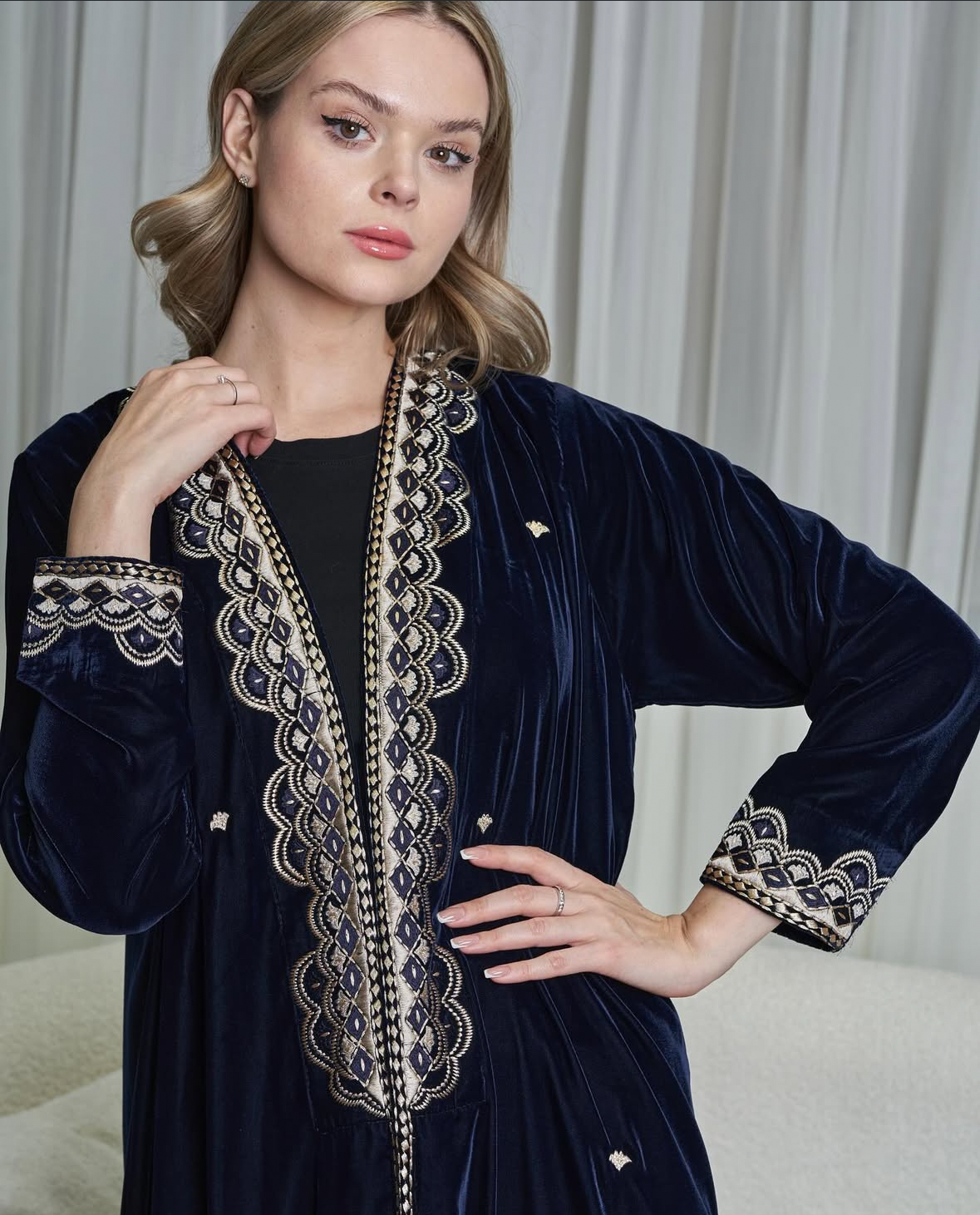 اختاري عبايتك المثالية التي تمنحك لمسة فخامة يومية وأناقة مميزة بتصميم عصري وخامة مخملية راقية تنسجم مع مختلف الإطلالات بسهولة تنسيق وتفاصيل أنثوية تأسر الأنظار دائمًا