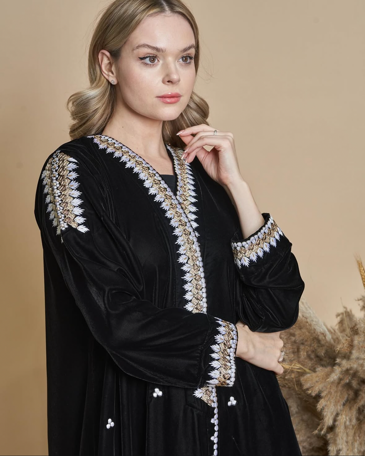 اختاري عبايتك المثالية التي تمنحك لمسة فخامة يومية وأناقة مميزة بتصميم عصري وخامة مخملية راقية تنسجم مع مختلف الإطلالات بسهولة تنسيق وتفاصيل أنثوية تأسر الأنظار دائمًا