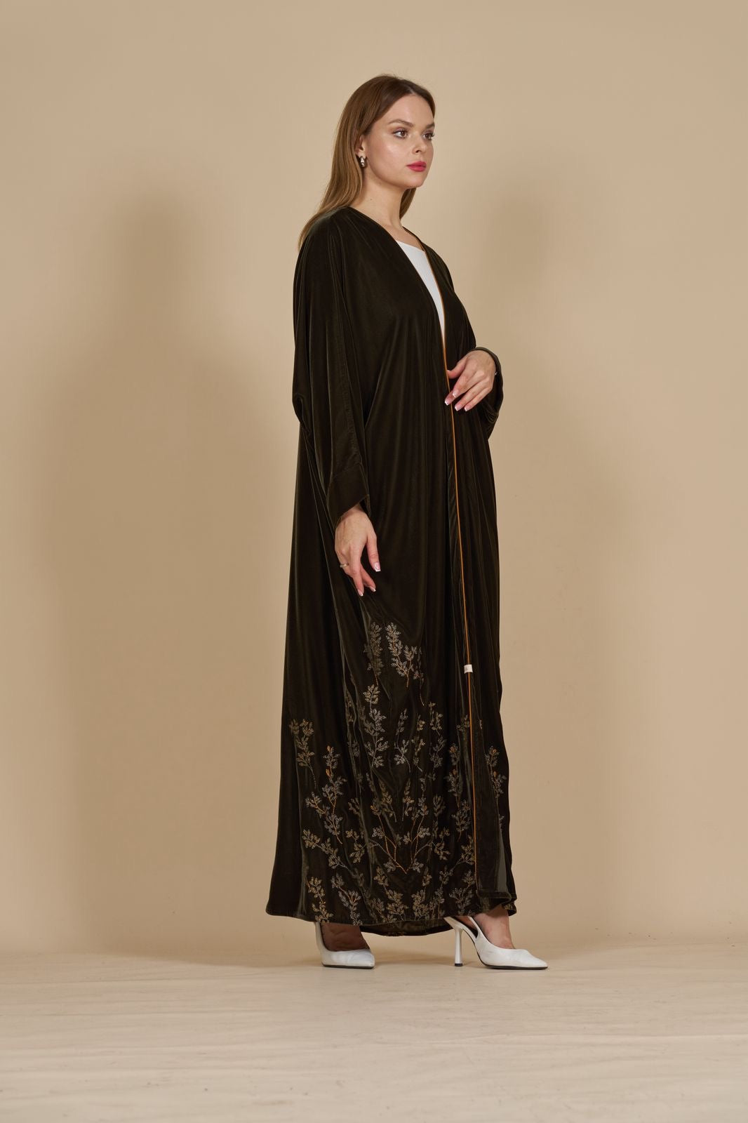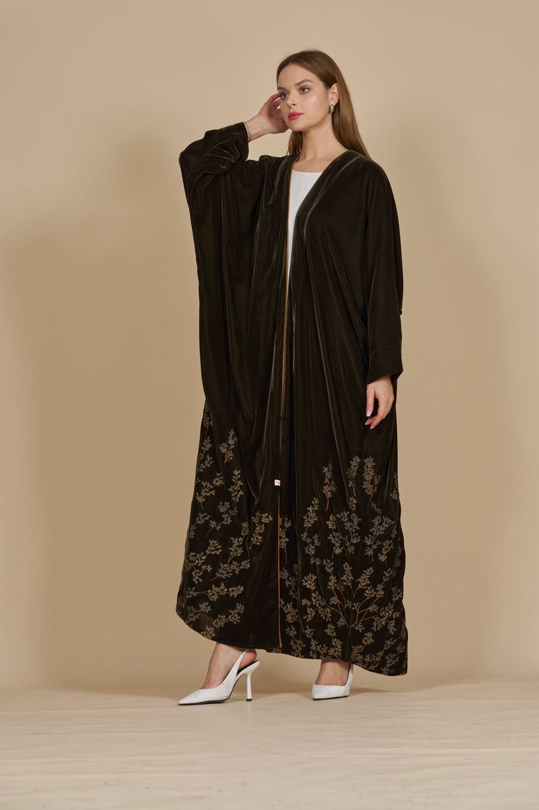 عباية أنيقه بخامة مخملية راقية وتصميم عصري يليق بكل إطلالة. سهلة التنسيق وتجمع بين الأناقة والأنوثة في كل تفصيل